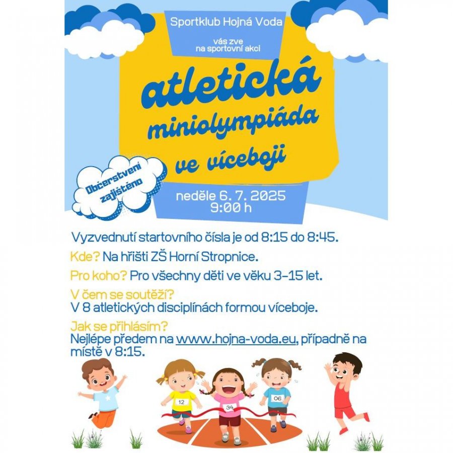 Soutěží se v 8 atletických disciplínách, jako je běh, běh přes překážky, sprint, skok z místa a skok daleký, hod oštěpem, hod krikeťákem, vrh míčem… Zvány jsou děti všech věkových kategorií.