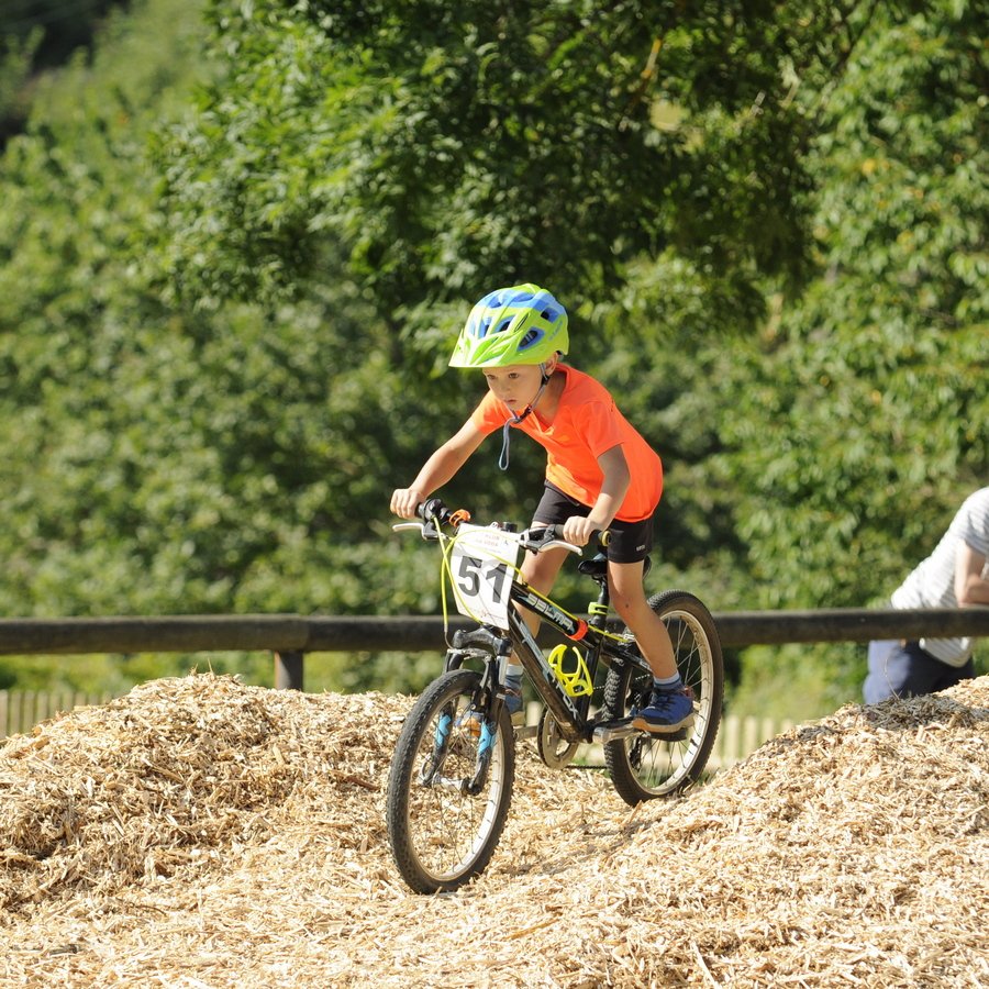 Cyklistický závod pro děti přes překážky, ve slalomové dráze i terénem